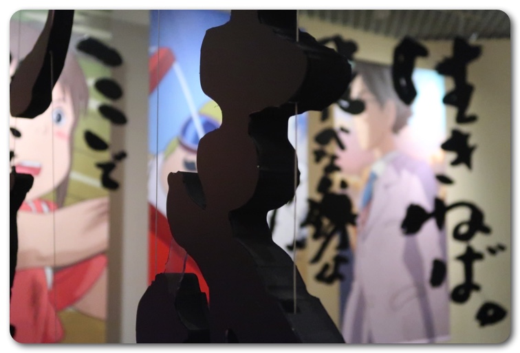 一部撮影可能スポットがあり、ジブリ映画の一番有名な一言がオブジェとして天井から吊り下げられていました。この展示はジブリファンとしてはグッときます。