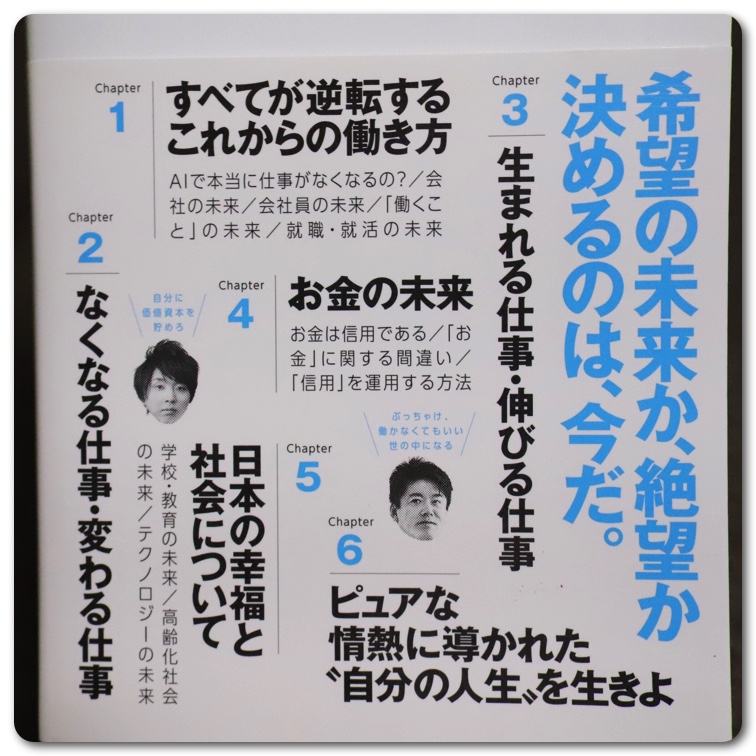 今の日本で最先端を走っている二人の対談が面白くないわけがありません。これだけの内容がわずか1,500円ほどで得られる読書は最高の投資であることは間違いありません。まだ、読んでいない方は、ぜひ手にとって書かれていることを実践してみてください。これから人口減少で苦しい日本で生きていくヒントがたくさん詰まっています。