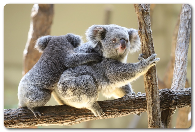 コアラのお食事タイムは初めて見ましたが、活発に動くコアラはめちゃくちゃかわいい。特に親子コアラが子供をおんぶしている姿は超絶ラブリー。今まで寝ている姿しか見たことがなかったので、とても楽しめました。