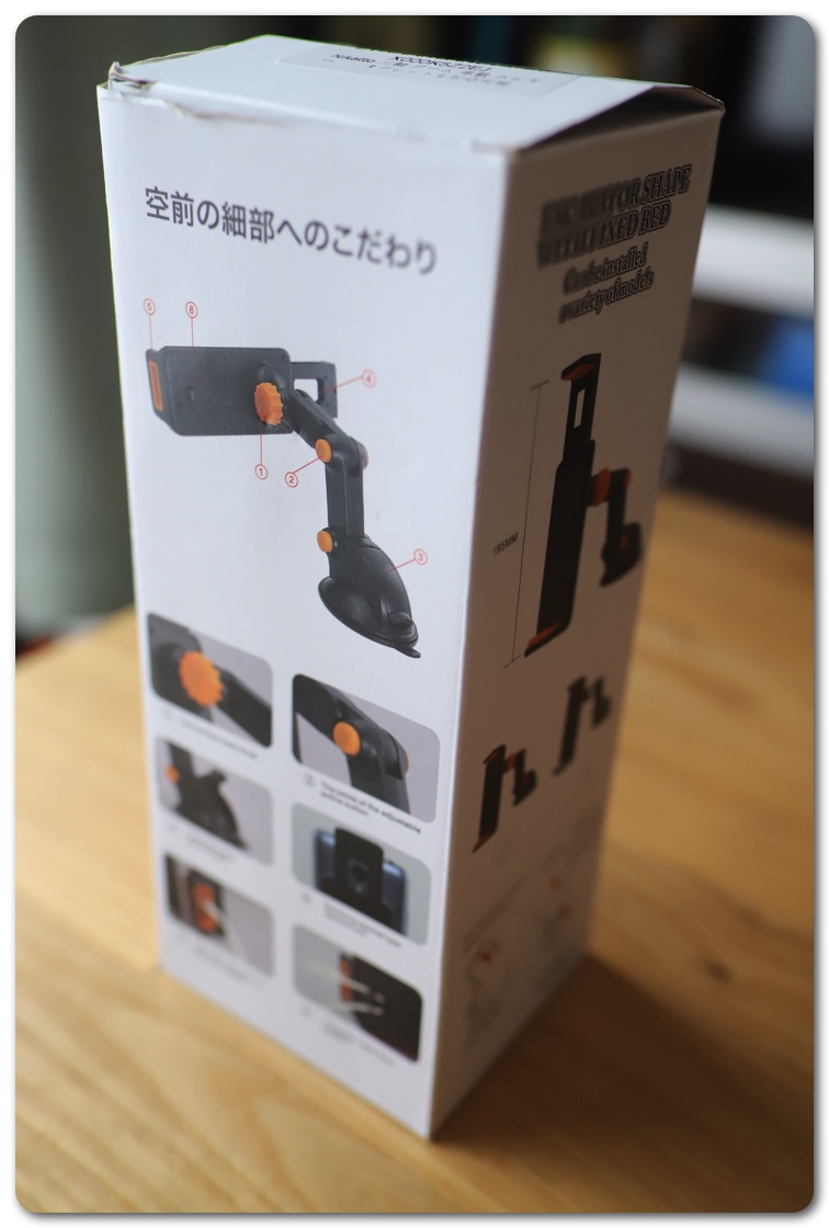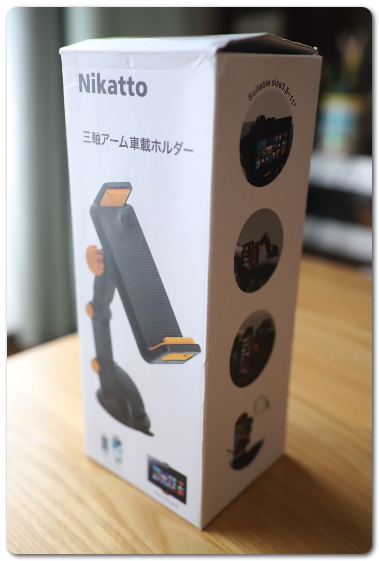 Amazonで色々検索し、レビューなどを調べた結果、評価が高かったのが「Nikatto 車載ホルダー 三軸 アーム」。価格は千円強とリーズナブル。色によって価格が200円ずつ違います。一番安いのはオレンジ、その次がグレー、ブラックの順に200円ずつ値段があがっていきます。