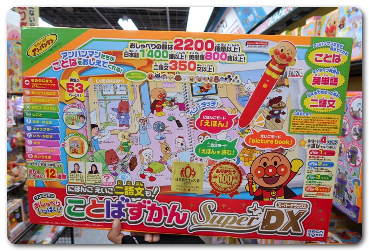 これも少し前のモデルですが、我が家にもあり、未だ現役で使っています。スイッチで英単語に切り替わるため、英会話の勉強に最適。身の回りのものやサービスなどが網羅されているので、子どもだけでなく、大人が英会話を勉強するときにも役立ちます。アンパンマン、おそるべし。