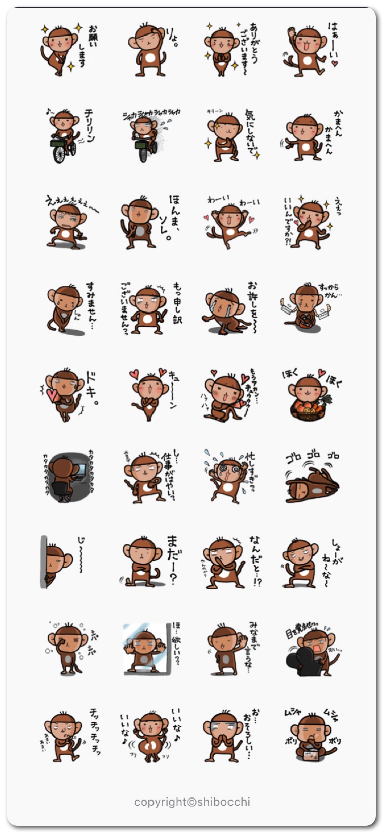 私のアイデンティティである関西弁のスタンプはいくつかあるものの、しっくりくるものがなく探しても見つからないので絵の得意な妹に相談したところ「スタンプ作ってみるわ」ということでできたのが「関西弁おちゃる」シリーズ。「今から帰るで〜」「しゃあない、しゃあない」「どないですか?」「かまへん、かまへん」などというベタベタの関西弁から、使う頻度の高い「オッケーィ」「あざす」「ワクワク」「お願いします」など頻度の比較的高いスタンプが網羅されております。