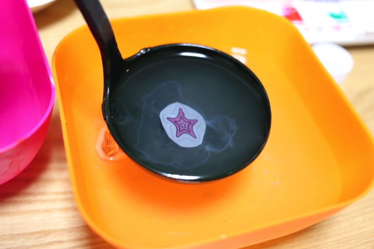アルギン酸ナトリウム水の中に絵の描かれたシートを入れ込むこともできます。