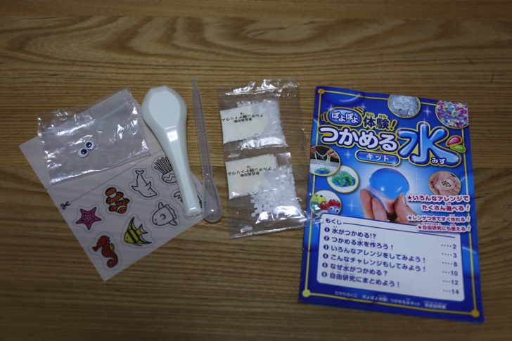夏休み真っ只中。子どもたちは毎日楽しいでしょうが、宿題も色々あり、半分ぐらいは親の仕事だったりします。特に読書感想文や自由研究などは毎年頭を悩ませています。自由研究については、娘が自分から「つかめる水キットがいい!」と本屋で見つけたので、これを利用することにしました。まだ一人では不安なので一緒に実験することに。