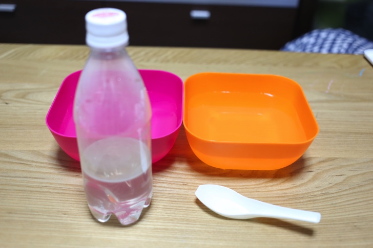 用意するものはペットボトル(500m)、ボウル2個。ボウルは水をためられる容器ならなんでも可。