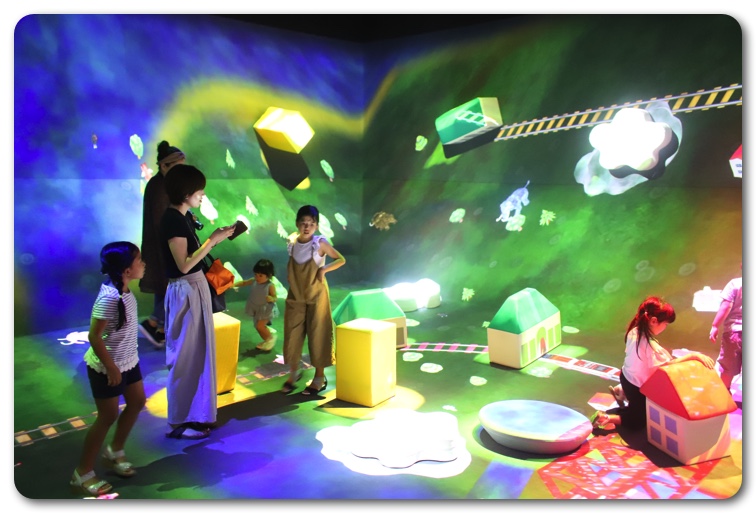 3階は実際に身体を動かして楽しめるアスレチックやお絵かき水族館など定番のコンテンツなどがあり、どちらかというと子ども向けになります。ここで遊ぶにはヒールの高い靴はNG。現地で運動靴が用意されており履き替えるよう促されます。時間によってはこのレンタルコーナーが混雑して時間を取られますので行く際はスニーカーやかかとの低いサンダルなどの動きやすい靴ででかけましょう。