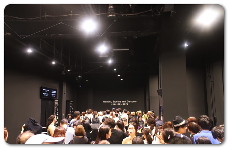 8月入ってすぐの平日の13時30分に訪れたところ、待ち時間は15分ほど。外で待たされることなくすぐ室内へ誘導され、そこで少し待ちましたが、想定していたより早く会場内に入れました。土日はおそらく長蛇の列だと思われますが、Twitterなどで調べた限りでは16時以降であれば、ほぼ並ぶことなく入場できるでしょう。ただし、お盆の最中はこの限りではないかもしれません。