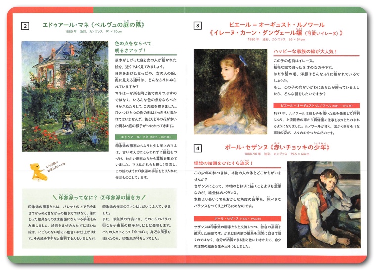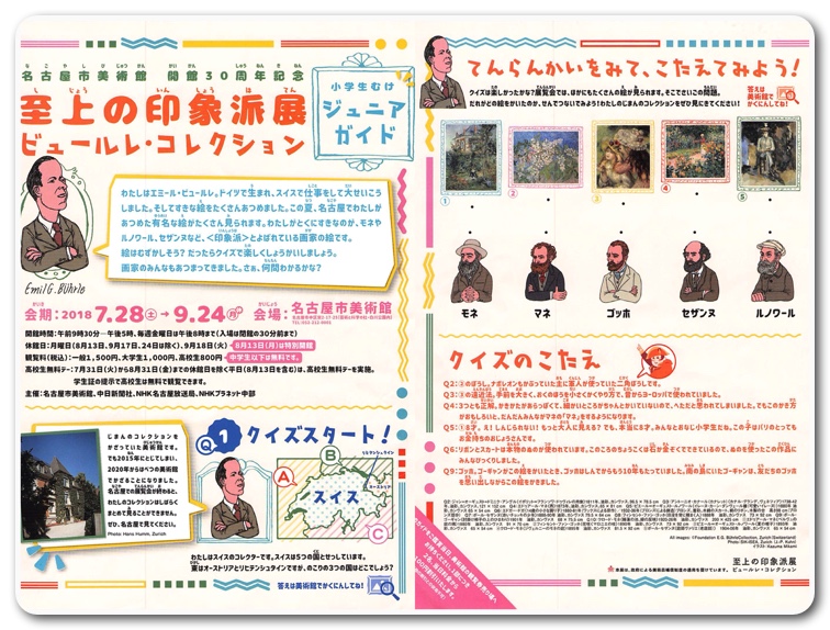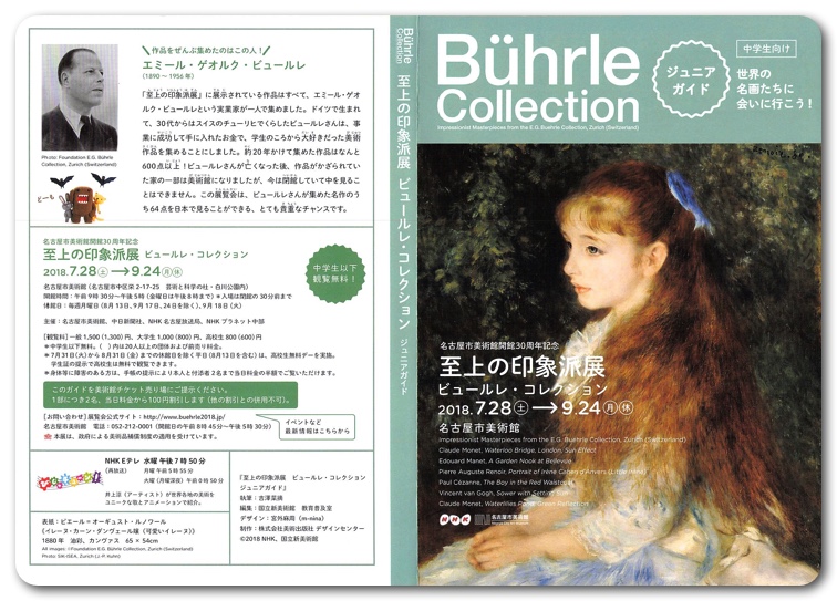 入口付近には小学生向け、中学生向けのパンフレットが用意されおり、とてもよくできた内容で楽しめます。特に中学生向けのパンフレットはビュールレ・コレクションのポイントを把握するには最適なので、ぜひ手にとって読んでみてください。