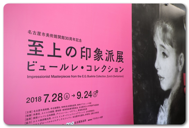 名古屋市美術館開館30周年記念として開催されている「至上の印象派 ビュールレ・コレクション」へ行ってきました。昨年末に開催されたシャガール展のときに前売り券を購入し、今か今かと楽しみに待っておりました。美術作品の中でも印象派の作品が一番好きで特に今回のビュールレ・コレクションの中にはなかなか目にすることのない作品がたくさんあり、名古屋に来るのを心待ちにしていました。