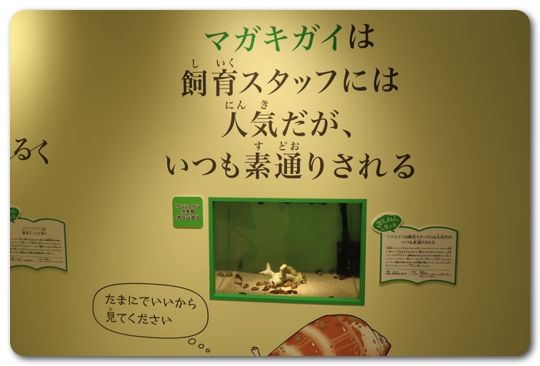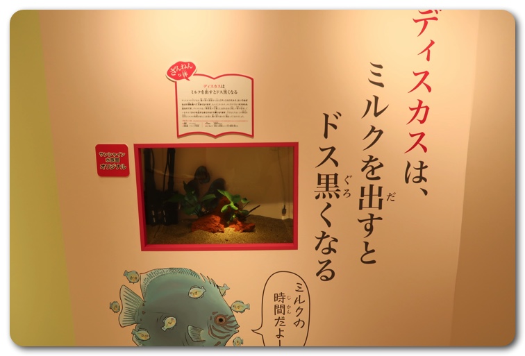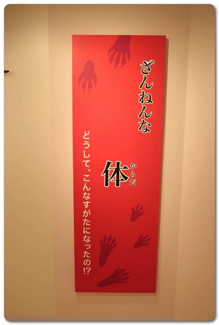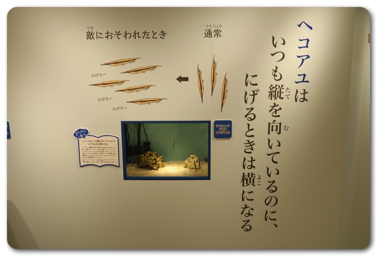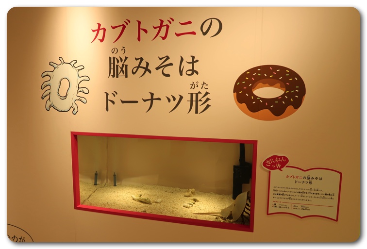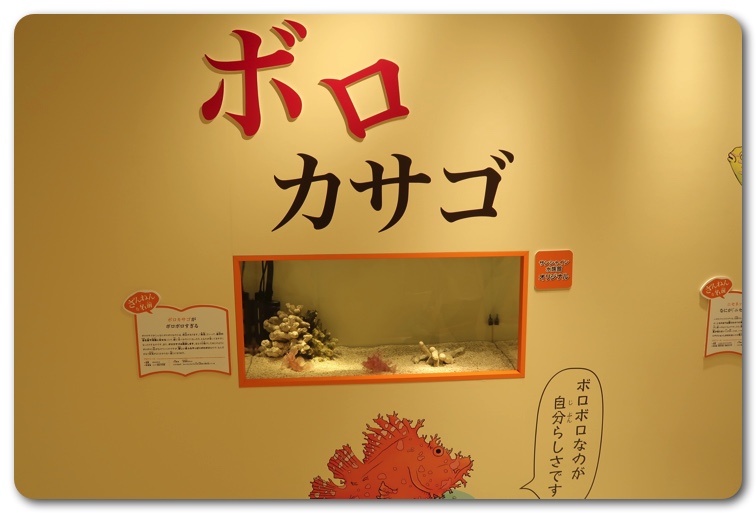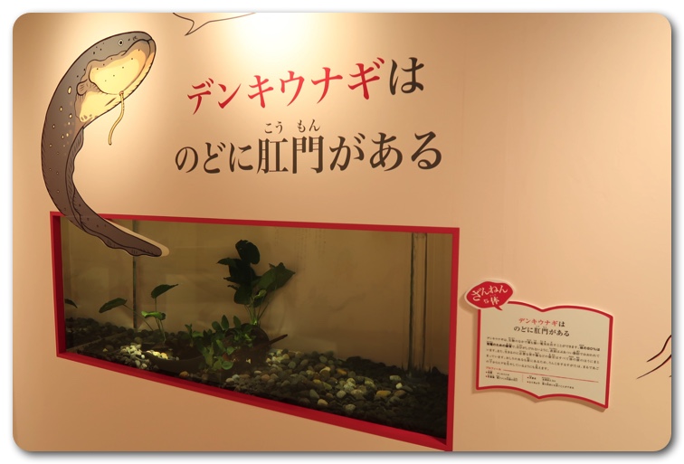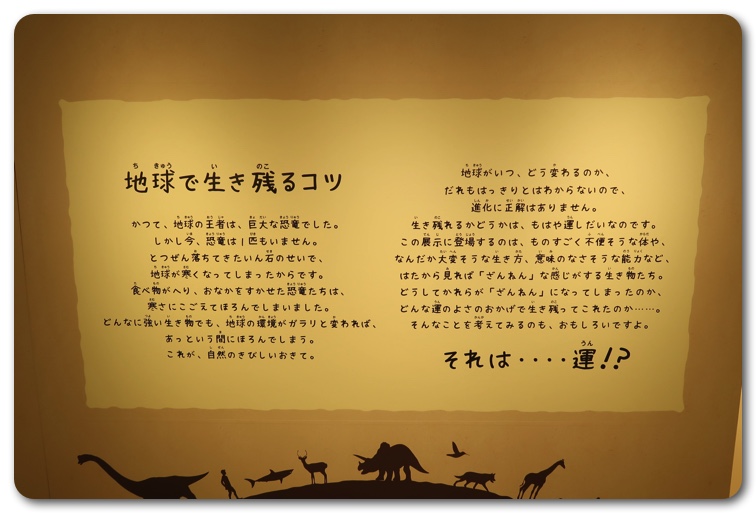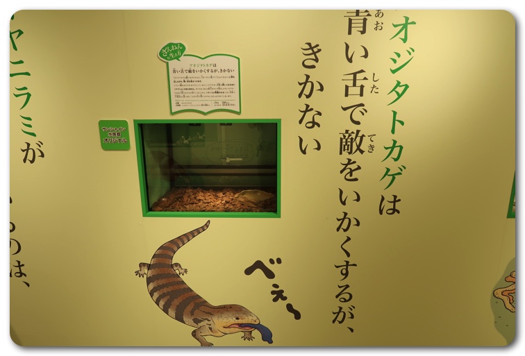 構成としては「ざんねんな体」「ざんねんな生き方」「ざんねんな能力」「ざんねんな名前」にわかりています。実際に生き物が展示されており、エピソードを読みながら実物を観察できます。
