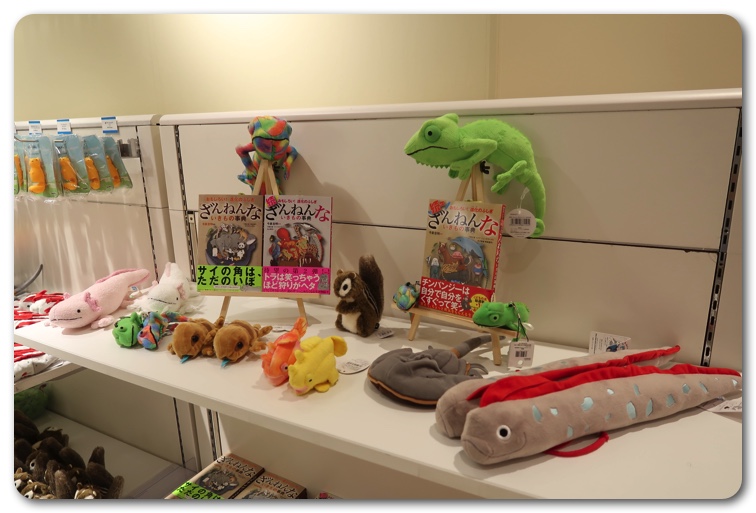 展示会場を出たところにはグッズコーナーがあり、ざんねんないきものたちのかわいいグッズや書籍が並んでいます。