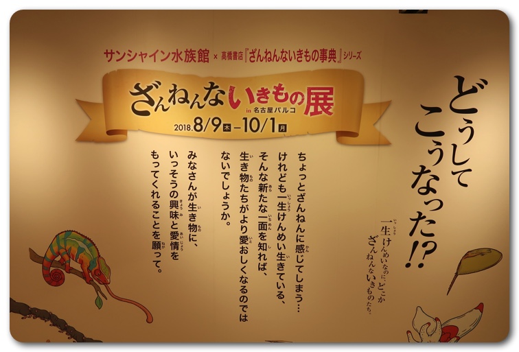 名古屋パルコの西館6階パルコギャラリーで開催されている「ざんねんないきもの展」へ行ってきました。サンシャイン水族館と高橋書店の「ざんねんないきもの辞典」シリーズのコラボで実現しました。