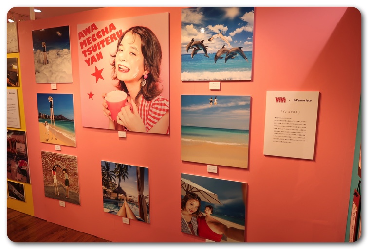 膨大な量のイラストを展示した第2エリアでは、パントビスコの代名詞「カオス絵日記」や数々の人気キャラクターが登場する「1コマファンタジー」といった作品が並ぶ。フォト、ムービー、ミュージックを中心とした第3エリアでは、宝島社「VOW」との面白写真企画や「ViVi」との前代未聞のコラボフォトの展示、話題のオンナバンド「CHAI」とのコラボMVやパントビスコが監督、演出を務めた映像作品が放映される「パントビスコ映画館」などがオープン。