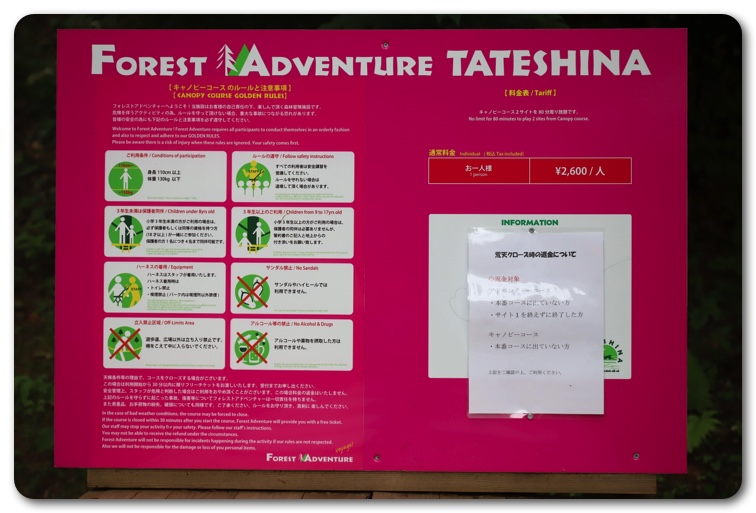 今回は初めてだったので、初心者向けのキャノピーコースを選択。料金はひとり2,600円で80分間、何回でもコースをまわることができます。