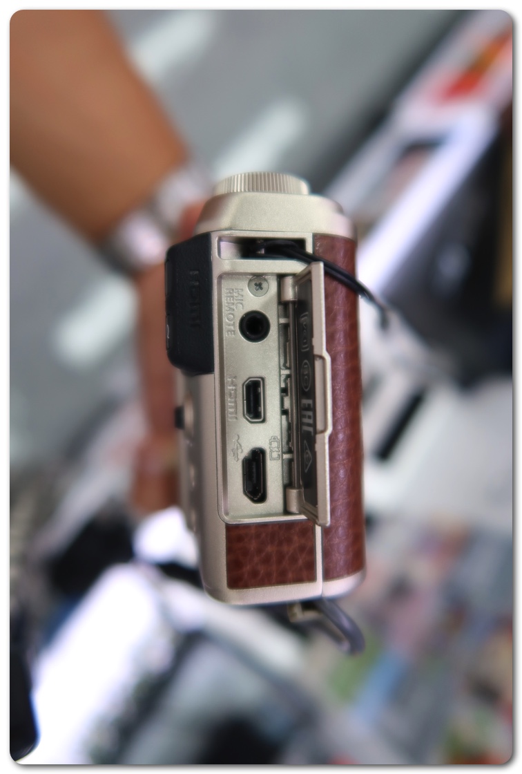側面にはマイクリモート、HDMI、USBのコネクタがあります。HDMIがあるので、ケーブルがあれば大画面モニタに繋いで撮影した画像を楽しめます。