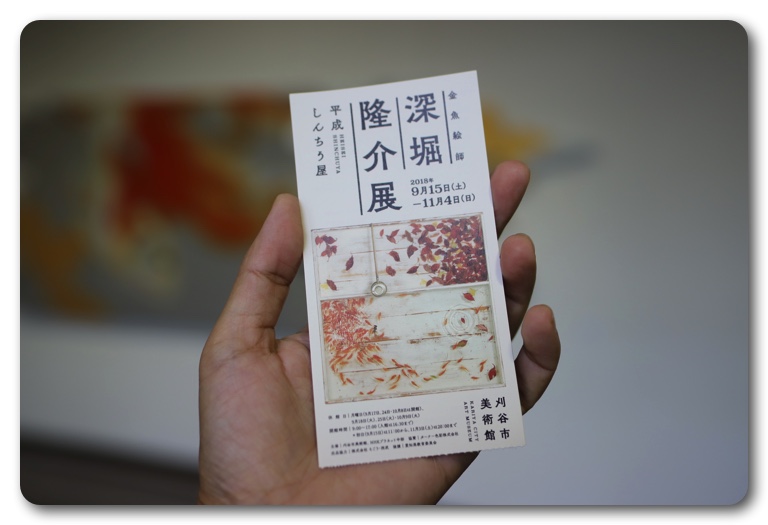 昨今、なぜか金魚ブーム。松坂屋名古屋店で開催していたアートアクアリウム展は連日長蛇の列ができるほどの大人気。そして、9月15日(土)から刈谷市美術館では「金魚絵師 深堀隆介展 平成しんちう屋」がスタートしました。開催3日目に行っていましたが、若い女性から年配の方まで大勢のお客様で賑わっていました。おそらく、刈谷市美術館の展覧会の入場者数を更新するのではないかと思われます。