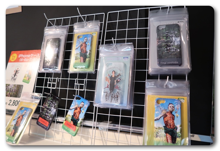 出口付近にはグッズの販売コーナーがあり、新刊の写真集をはじめ、クリアファイル、スマホケース、ブロックメモ、ポストカードなどが並んでいます。