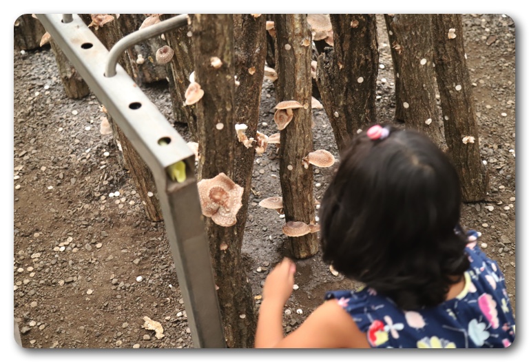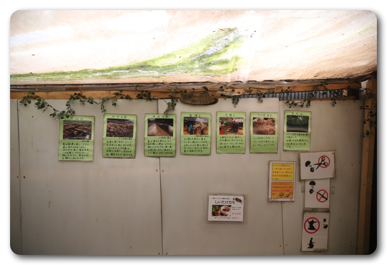 川辺は特に問題なく遊べましたが、宿泊施設や温泉、アスレチックアクティビティ施設、バーベキュー場などはすべて9月末まで営業休止とのこと。唯一、奥にある高槻しいたけセンターが営業してたので、しいたけ狩りをすることに。