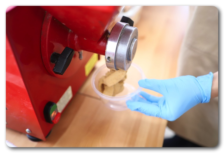 そして、一番この店の中で惹かれたのはピーナッツペーストをその場で作ってれるサービス。プレス機が置いてあり、横においてあるピーナッツを上から入れると、すぐにペースト状になって出てきます。完全無添加できたてのピーナッツバターはめっちゃ美味しい。ただし、ピーナッツそのままなので、甘みはありません。パンに塗るなら少しクリームチーズと砂糖を混ぜるとさらに美味しくいただけます。