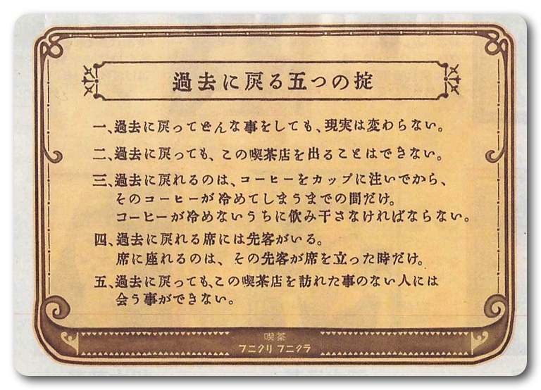 過去に戻れたら…というよくある設定ながら、「過去に戻る五つの掟」があり、過去に戻ってどんなことをしても、現実は変わらないなど、いままでのタイムトラベルものとは違います。
