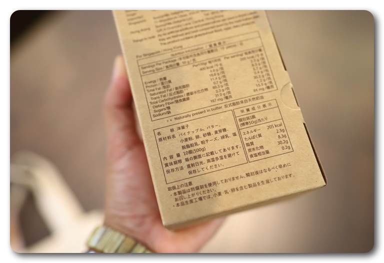 原材料はパイナップル、バター、小麦粉、卵、砂糖、麦芽糖、脱脂粉乳、粉チーズ、練乳、塩と天然の材料だけで作られています。こういったケーキだとマーガリンや添加物のオンパレードということが多いのですが、身体に優しい材料で作られているので安心して食べられます。