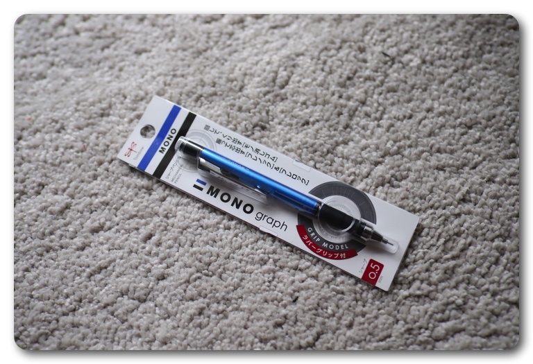 それがトンボ鉛筆の「MONO graph」。モノ消しゴムを搭載したシャープペンシルで色々な種類があります。今回購入したのはラバーグリップ付モデル。握るところにラバーグリップが付いているため握り心地が抜群。