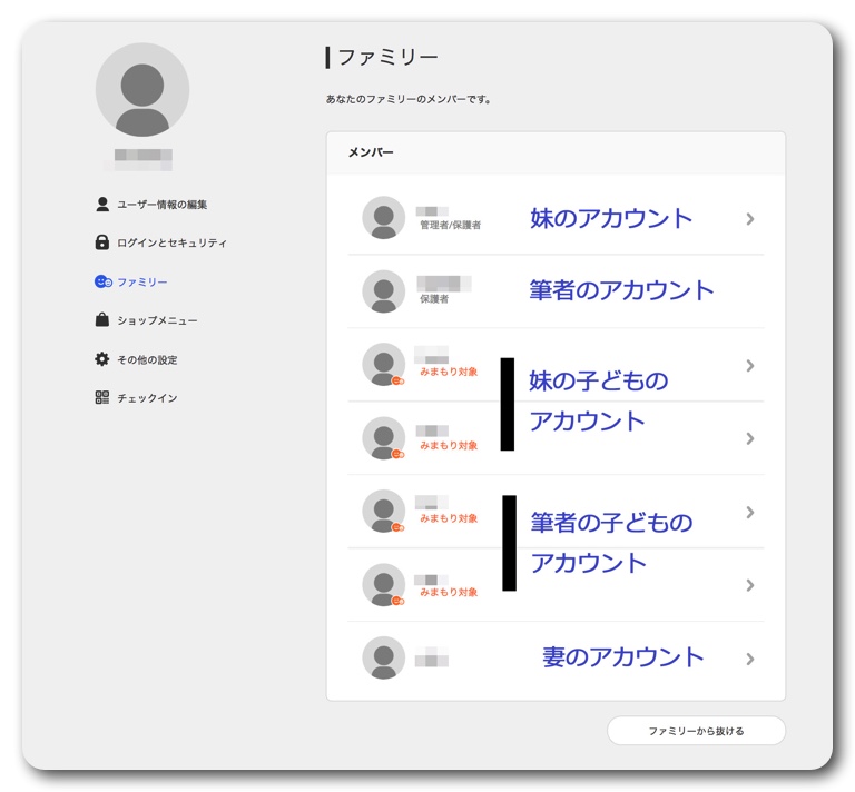 ファミリープランにまとめる作業をしてくれた妹の旦那はほとんどゲームをしないらしく、もし遊ぶ時は妹のアカウントを借りるとのことで、実際は7人分の登録となりました。