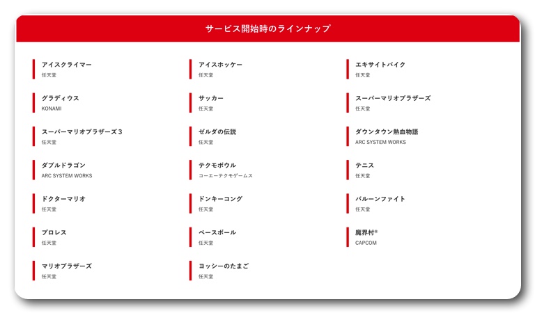 Nintendo Switch Onlineに入会するメリットのひとつとして昔のファミコンゲームが遊べるようになります。マリオブラザーズやドンキーコングをはじめ、グラディウスなどのシューティングゲームなどがラインナップされています。大ヒットゲームのスーパーマリオブラザーズもあり、筆者世代には超懐かしい。