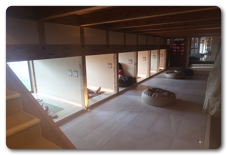 ここの岩盤浴施設は6月にリニューアルされ、数が20床以上増えたため、やや混雑が緩和されましたが、土日祝はやはり大勢のお客さんでごった返します。