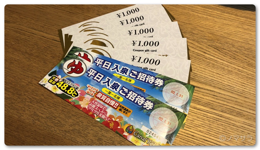 ちなみにキャナルリゾートはキャッシレス決済5%還元対象店舗のためクレジットカードやiDなどの電子決済サービスを利用すれば5%分の代金が還元されます。例えば館内で食事などをして料金が5,000円だった場合、現金で払えば何も特典はありませんが、キャシュカードを使えば250円お得な上、キャッシュカードのポイントも貯まります。