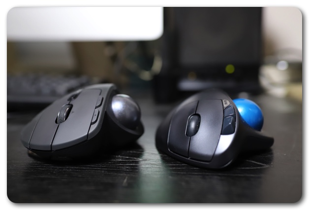 「M570t」でも十分使いやすかったのですが、 「MX ERGO」は比べ物にならないほど質感が高く、操作性も抜群。価格は倍ですが、質感や操作性はそれ以上の価値があります。ボール部分の精度も高く、全くブレがありません。使い始めはやや硬かったのですが、二日ほど使ったらスルスルヌルヌル動くようになりました。