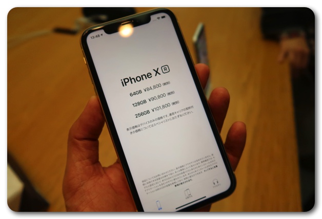 一方、昨日発売されたiPhoneXRはCPUはiPhoneXSと同じスペックでありながら、カメラをひとつにしたり、液晶ディスプレイを採用するなどしてコストダウンされ、税込10万円を切る価格。このスペックでこの価格ならコストパフォマンスは悪くありません。