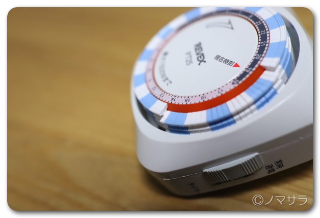 24時間を15分単位で何回でも、毎日自動的に電源を「オン/オフ」できる優れもの。価格は約600円ととてもリーズナブル。構造はとてもアナログでコマを上げたり下げたりすることにより、時間設定が可能になります。