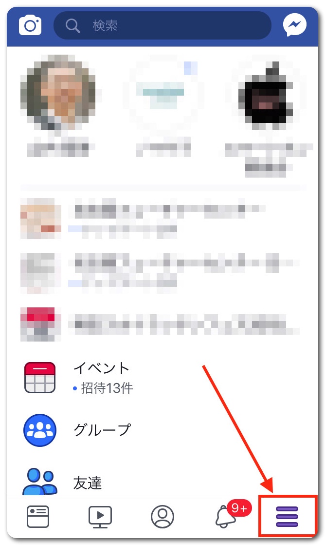 右下の「三」をタップ