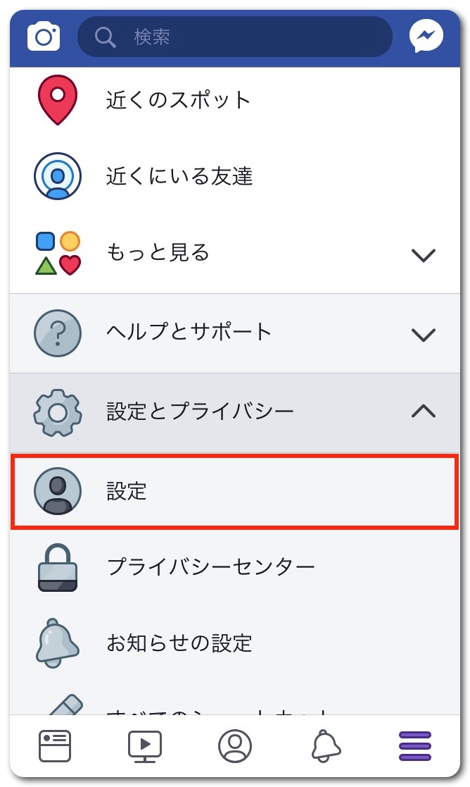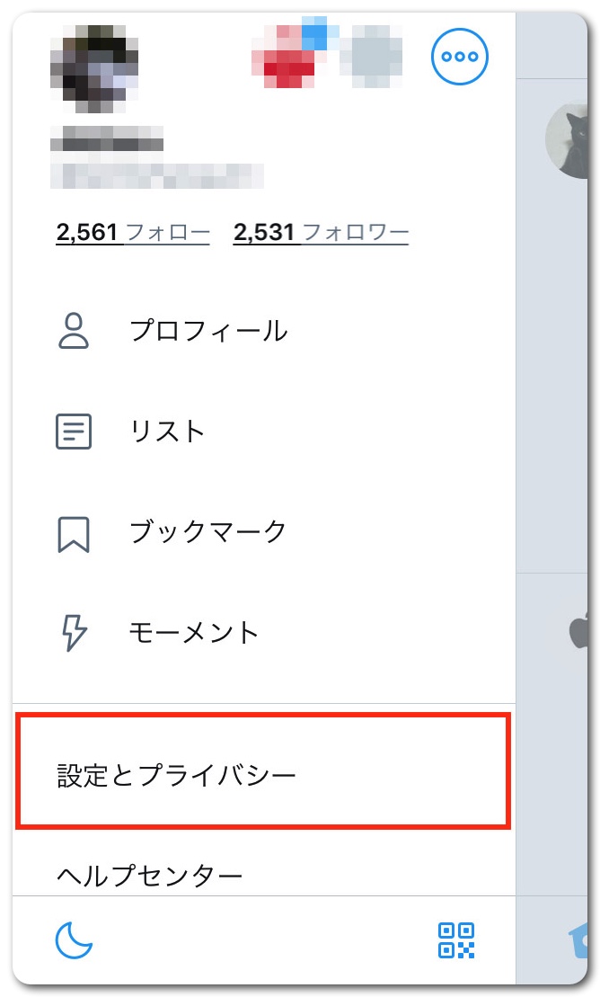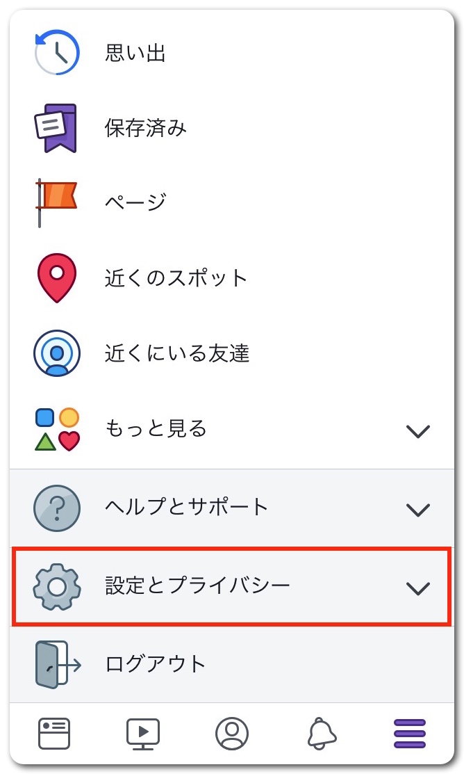 「設定とプライバシー」をタップ