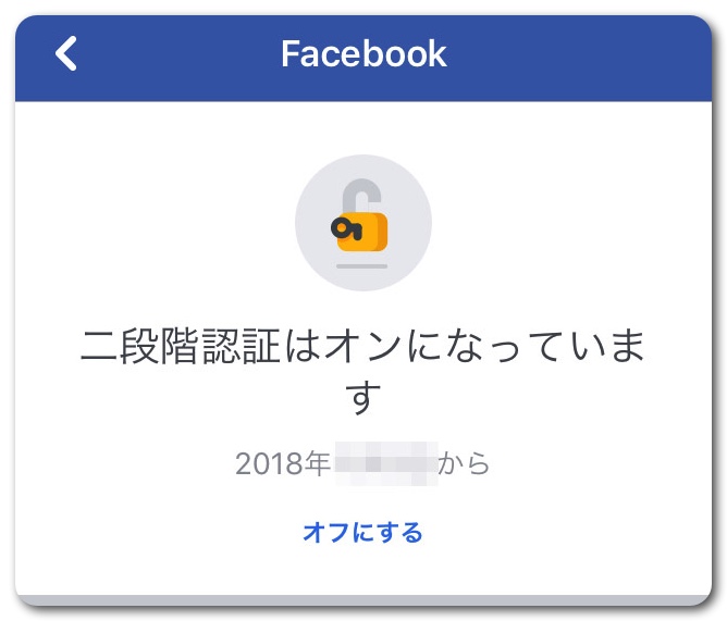 これでFacebookの二段階認証はオンになりました。
