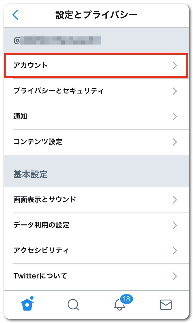 「アカウント」をタップ