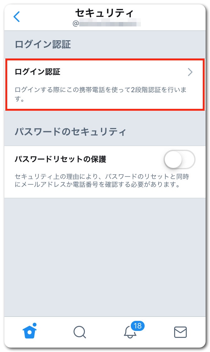 「ログイン認証」をタップ