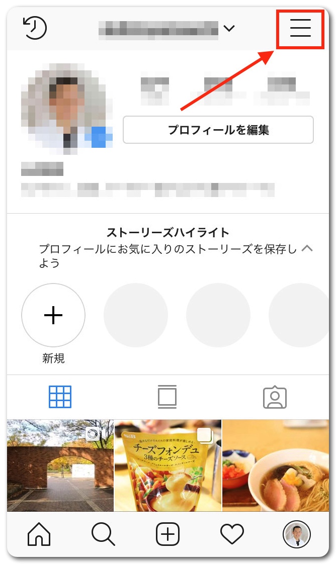 右上の「三」をタップ