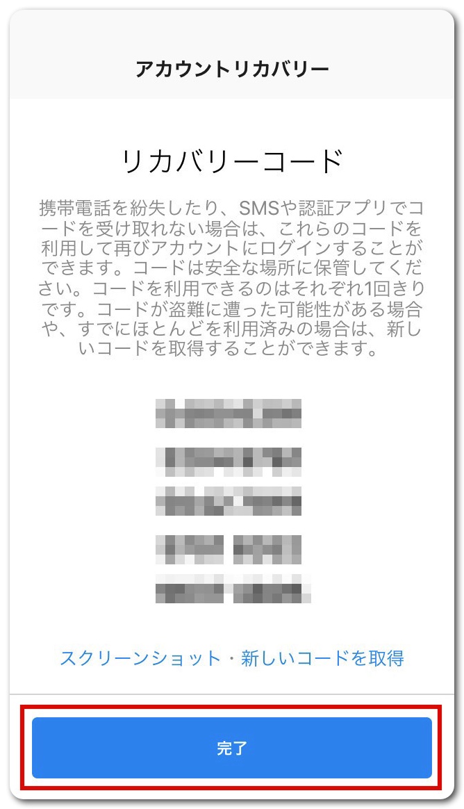 念のため、リカバリーコードを取得し、画像を保存しておきましょう。