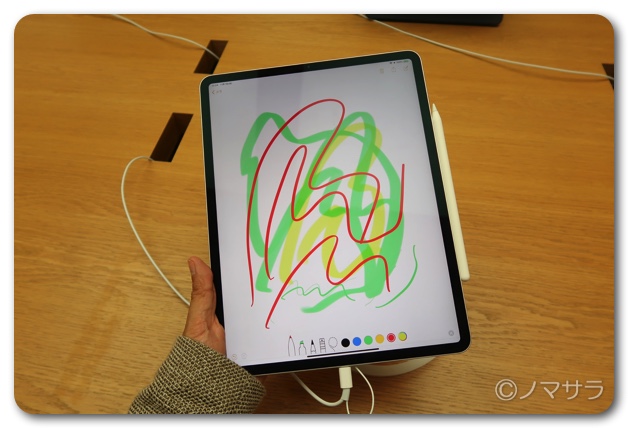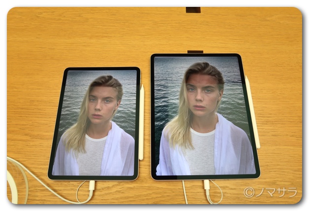 11インチと12.9インチを比較してみました。通常の用途なら11インチで十分だと思いますが、イラストレーターの方は12.9インチは必須でしょう。