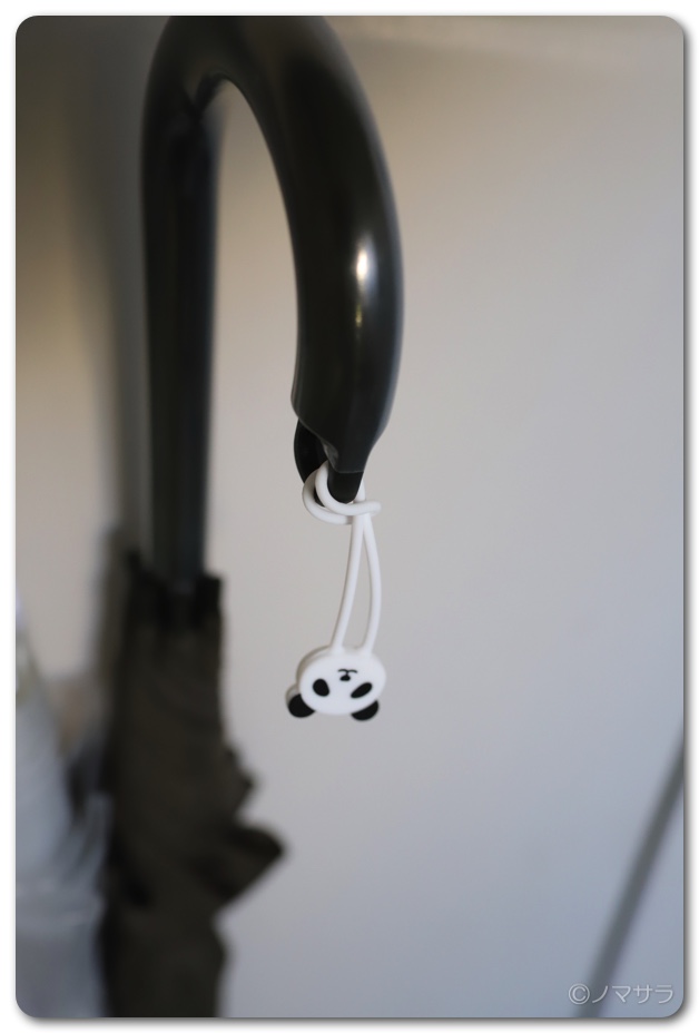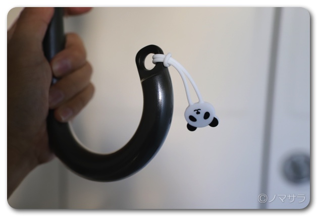 以前から傘の目印になるようなものを捜しており、やっといいものが見つかりました。無印良品のシンプルな傘を使っており、先端に穴が空いているので、ここに通すことができます。これで傘を間違えて持っていかれる可能性はなくなりました。ただし、かわいいので、これを目当てに盗られる可能性はなきにしもあらず…。