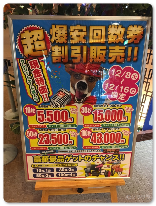 なお、12月8日(土)〜16日(日)限定で回数券が割引で販売されます。30枚購入の場合、1枚あたり200円引きの15,000円。1回あたり500円で利用できます。100枚購入の場合は1回あたり430円と爆安。