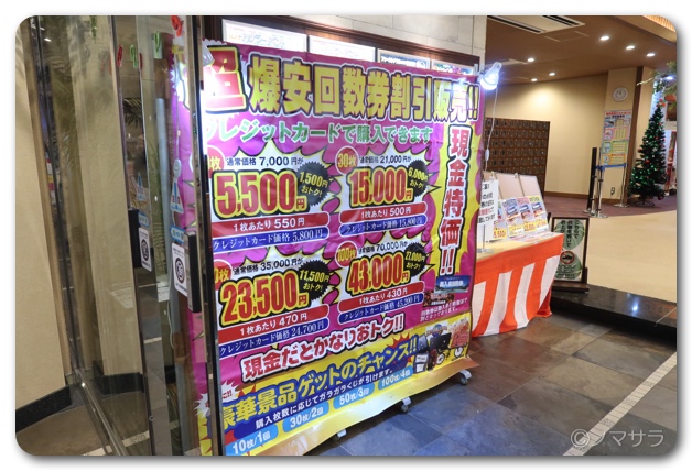 なお、12月16日(日)まで激安回数券の販売が行われております。リピートする方は絶対お得なので、どうぞこの機会をお見逃しなく。今回は約1年分、50枚の回数券を購入しました。1枚あたり470円となり500円以下で温泉を堪能することができます。購入した方にはガラガラ抽選会があり、液晶テレビやダイソンの掃除機、ニンテンドースイッチなどが当たるかも。おそらく当たりは土日の昼間しか入ってないような気がしますので、当てたい方は週末を狙いましょう(笑)