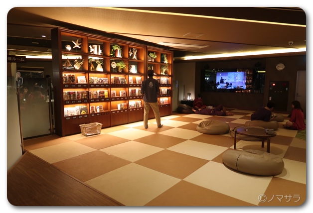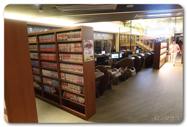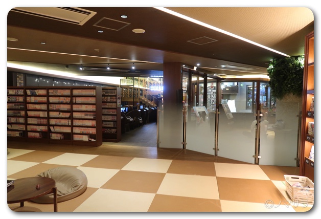 岩盤浴コーナーは前回の改装で入口付近が手狭な感じになっていたのですが、以前無料休憩スペースだった場所を岩盤浴専用の休憩スペースとし、雑誌と漫画のラックをここに移動しました。それによって入口付近はかなりゆったりとして開放感がでました。