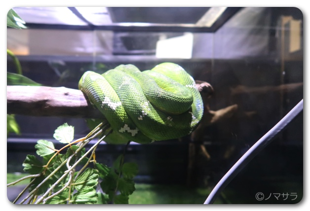 以降もヘビやカエル、クモなど、ゾクゾクする生き物が続々と(笑)展示してあります。前回見たときも思ったのですが、これを運んだり、展示したりする人がすごいなと…。こういうのに長時間触れていたら悪い夢を見て熟睡できなくなりそう。