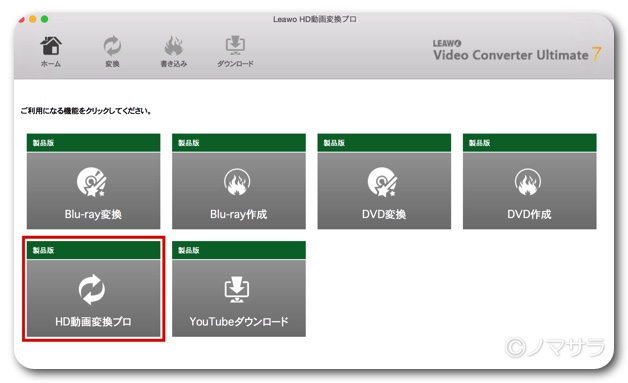 「Leawo HD動画変換プロ」ではBlu-ray変換、Blu-ray作成、DVD変換、DVD作成、HD動画変換プロ、YouTubeダウンロードが可能。これだけあれば、ほとんどの用途に対応できます。
