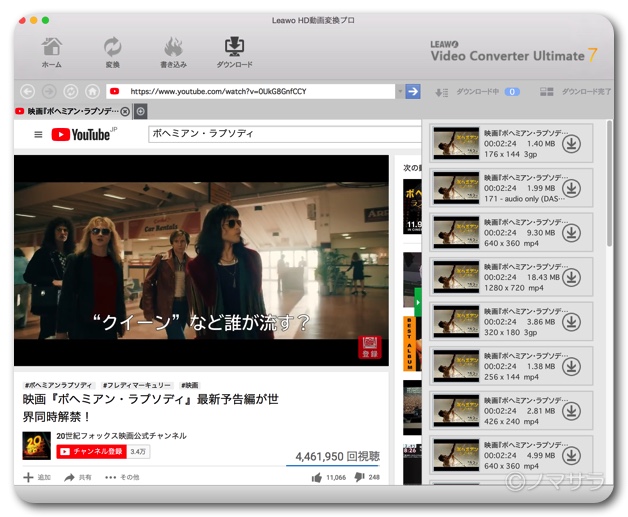 そしてYouTubeの動画を保存しておきたい時に重宝するのが「YouTubeダウンロード」。ダウンロードしたいビデオのURLを入力(コピペ)し、右にある形式を選んでボタンを押すだけ。下に行けば行くほど高精細になりますが、その分容量が大きくなります。音声だけの抜き出しもできるため、環境BGMなどをダウンロードしてiPhoneなどに取り込んでおけば、パケット量を気にすることなく音楽を楽しむことができます。