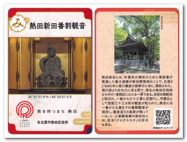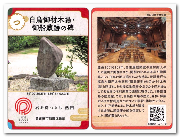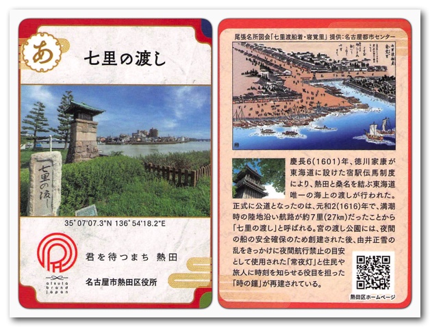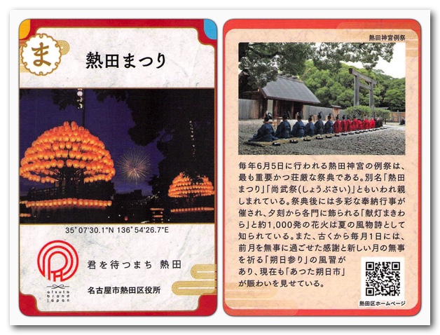 それはさておき、熱田区民の方はもちろん、周辺の地域にお住まいの方は、ぜひ「 あつた歴史文化カード」を集めてみてください。尾張名古屋の歴史を楽しく学べます!