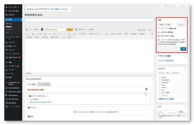 先日、尊敬するブロガーのお一人である「オニマガ」で「WordPressの投稿画面の公開ボタンを記事入力欄の下に移動したらブログ更新が超捗る!」という記事が投稿されていました。